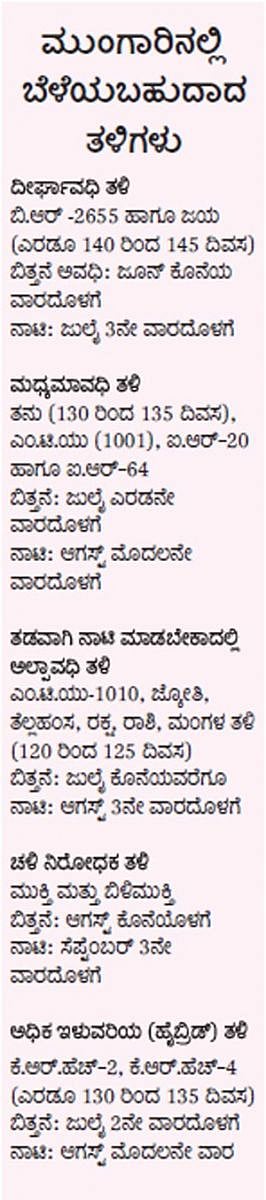 ಭತ್ತದ ಅಧಿಕ ಇಳುವರಿಗೆ ಉತ್ತಮ ಬೀಜಗಳ ಆಯ್ಕೆ ಮುಖ್ಯ. ನಾಲ್ಕು ಲೀಟರ್ ನೀರಿಗೆ ಒಂದು ಕೆ.ಜಿ ಉಪ್ಪನ್ನು ಕರಗಿಸಿ ಬಿತ್ತನೆ ಬೀಜ ನೆನೆಸಬೇಕು. ಅರ್ಧ ಬಲಿತಿರುವ ಮತ್ತು ಜೊಳ್ಳಾದ ಬೀಜಗಳು ಮೇಲೆ ತೇಲುತ್ತವೆ. ಇವುಗಳನ್ನು ತೆಗೆದು ಕೆಳಗಡೆ ಗಟ್ಟಿಯಾಗಿರುವ ಬೀಜಗಳನ್ನು ಸ್ವಚ್ಛವಾದ ನೀರಿನಲ್ಲಿ ತೊಳೆದು ಬಿತ್ತನೆಗೆ ಉಪಯೋಗಿಸಬೇಕು.