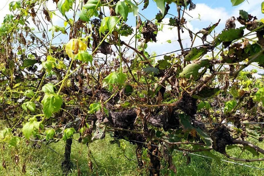 ತೆಲಸಂಗ (ಬೆಳಗಾವಿ ಜಿಲ್ಲೆ): ವಿವಿಧ ರಾಜ್ಯಗಳಿಗೆ ಉತ್ತಮ ಗುಣಮಟ್ಟದ ದ್ರಾಕ್ಷಿ ಹಾಗೂ ಒಣ ದ್ರಾಕ್ಷಿ ಸರಬರಾಜು ಮಾಡುವ ತೆಲಸಂಗ ಭಾಗದಲ್ಲಿ ದ್ರಾಕ್ಷಿ ಬೆಳೆಯಲ್ಲಿ ಈ ಬಾರಿಯೂ ‘ದಾವನಿ’ ರೋಗ ಕಾಣಿಸಿಕೊಂಡಿದೆ.