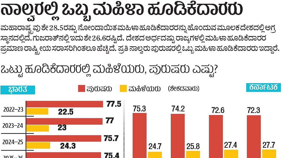 ಮಹಾರಾಷ್ಟ್ರವು ಶೇ 28.5ರಷ್ಟು ನೋಂದಾಯಿತ ಮಹಿಳಾ ಹೂಡಿಕೆದಾರರನ್ನು ಹೊಂದುವ ಮೂಲಕ ದೇಶದಲ್ಲಿ ಅಗ್ರ ಸ್ಥಾನದಲ್ಲಿದೆ. ಗುಜರಾತ್ನಲ್ಲಿ ಇದು ಶೇ 26.6ರಷ್ಟಿದೆ. ದೇಶದ ಅರ್ಧದಷ್ಟು ರಾಜ್ಯಗಳಲ್ಲಿ ಮಹಿಳಾ ಹೂಡಿಕೆದಾರರ ಪ್ರಮಾಣ ರಾಷ್ಟ್ರೀಯ ಸರಾಸರಿಗಿಂತಲೂ ಹೆಚ್ಚಿದೆ. ಪ್ರತಿ ನಾಲ್ವರು ಪುರುಷರಲ್ಲಿ ಒಬ್ಬ ಮಹಿಳಾ ಹೂಡಿಕೆದಾರರು ಇದ್ದಾರೆ.