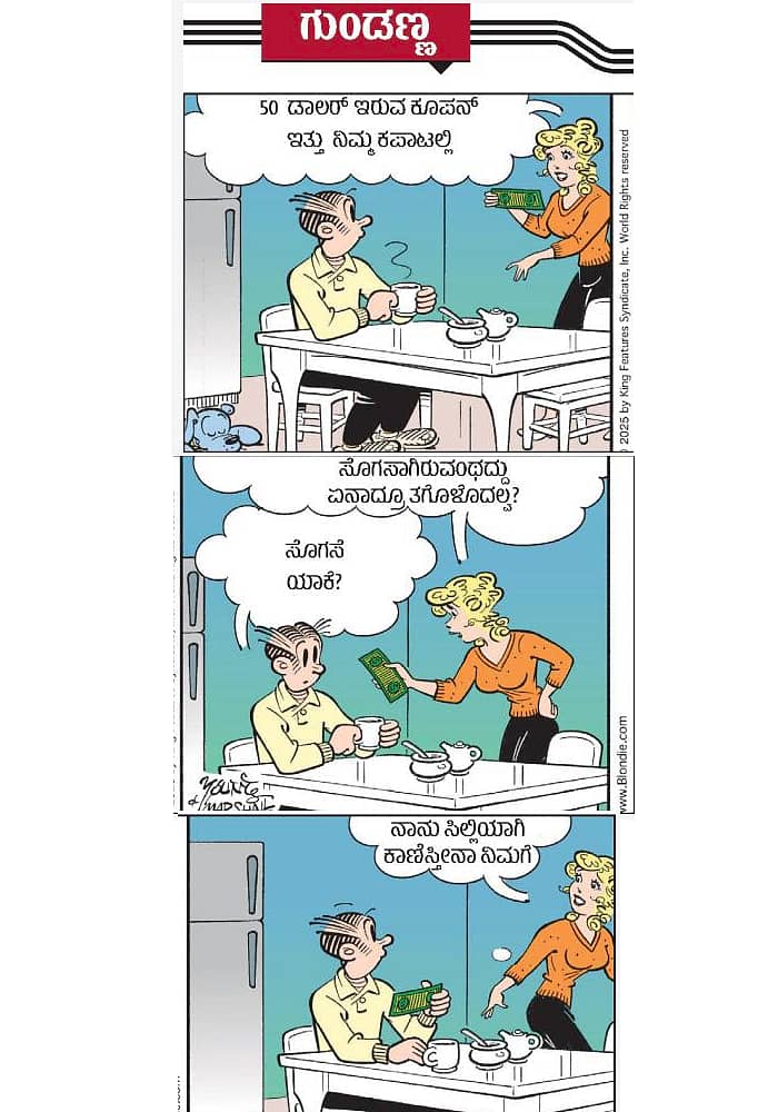 <p>ಗುಂಡಣ್ಣ: ಬುಧವಾರ, 04 ಮಾರ್ಚ್ 2026</p>.<div><p><strong>ಪ್ರಜಾವಾಣಿ ಆ್ಯಪ್ ಇಲ್ಲಿದೆ: <a href="https://play.google.com/store/apps/details?id=com.tpml.pv">ಆಂಡ್ರಾಯ್ಡ್ </a>| <a href="https://apps.apple.com/in/app/prajavani-kannada-news-app/id1535764933">ಐಒಎಸ್</a> | <a href="https://whatsapp.com/channel/0029Va94OfB1dAw2Z4q5mK40">ವಾಟ್ಸ್ಆ್ಯಪ್</a>, <a href="https://www.twitter.com/prajavani">ಎಕ್ಸ್</a>, <a href="https://www.fb.com/prajavani.net">ಫೇಸ್ಬುಕ್</a> ಮತ್ತು <a href="https://www.instagram.com/prajavani">ಇನ್ಸ್ಟಾಗ್ರಾಂ</a>ನಲ್ಲಿ ಪ್ರಜಾವಾಣಿ ಫಾಲೋ ಮಾಡಿ.</strong></p></div>