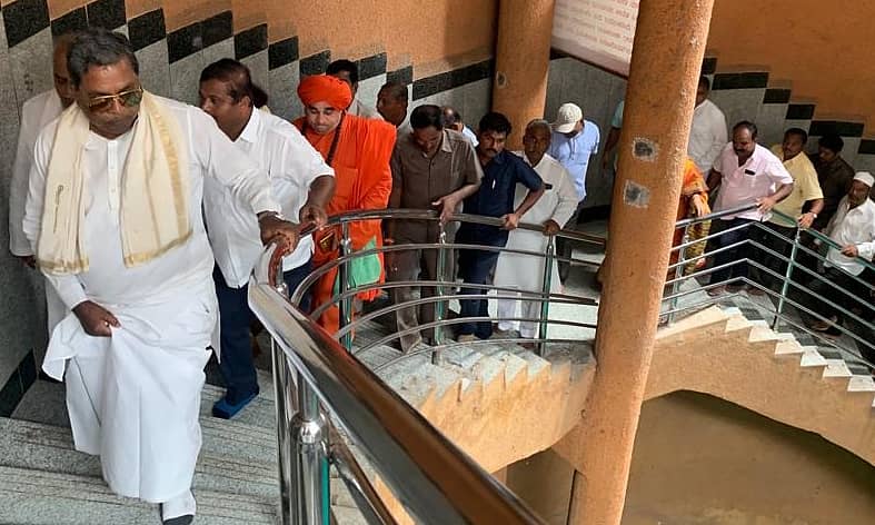 ಬಾಗಲಕೋಟೆ: ಕೂಡಲಸಂಗಮದ ಬಸವಣ್ಣನ ಐಕ್ಯಮಂಟಪಕ್ಕೆ ಭಾನುವಾರ ಭೇಟಿ ನೀಡಿದ ಸಮ್ಮಿಶ್ರ ಸರ್ಕಾರದ ಸಮನ್ವಯ ಸಮಿತಿ ಅಧ್ಯಕ್ಷ ಸಿದ್ದರಾಮಯ್ಯ ಹಾನಿಗೀಡಾಗಿರುವ ಕಟ್ಟಡದ ಭಾಗಗಳನ್ನು ವೀಕ್ಷಣೆ ಮಾಡಿದರು.