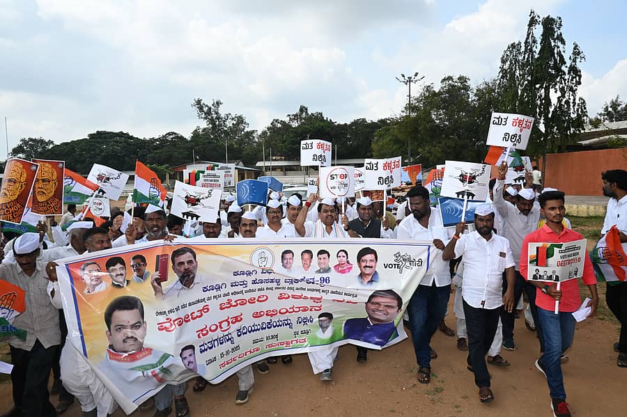 ಶಾಸಕ ಡಾ. ಶ್ರೀನಿವಾಸನ್ ಎನ್.ಟಿ. ಮಾತನಾಡಿ, ಮತಗಳ್ಳನದಂತಹ ವಿಷಯಗಳ ಬಗ್ಗೆ ಎಚ್ಚರ ವಹಿಸಿದೆ ಇದ್ದರೆ ಮುಂದಿನ ದಿನಗಳಲ್ಲಿ ಸಂವಿಧಾನ ಉಳಿಯುವುದಿಲ್ಲ. ಮುಂದೆ ಇನ್ನೂ ಎನೇನು ಚೋರಿಯಾಗುತ್ತವೆ ಎಂದು ಭಯವಾಗುತ್ತದೆ. ಮತಗಳ್ಳತನ ಖಂಡಿಸಿ ಹಾಗೂ ಸಂವಿಧಾನ ಉಳಿಸಿ ಅಭಿಯಾನವನ್ನು ದೇಶದಲ್ಲಿ ಕಾಂಗ್ರೆಸ್ ಪಕ್ಷ ಮಾಡುತ್ತಿದೆ. ಮತಗಳ್ಳತನದಿಂದ ಒಂದು ಹಳ್ಳಿಯ ಹಕ್ಕು, ಒಂದು ಕುಟುಂಬದ ಭವಿಷ್ಯ, ರೈತನ ಕನಸು ಕಳೆದು ಹೋಗುತ್ತದೆ. ಮತಗಳ್ಳತನ ನಿಲ್ಲಿಸಬೇಕು ಹಾಗೂ ಸಂವಿಧಾನ ಉಳಿಸಬೇಕು ಎಂದು ರಾಹುಲ್ ಗಾಂಧಿ ದೇಶಾದ್ಯಂತ ಹೋರಾಟ ಆರಂಭಿಸಿದ್ದಾರೆ. ಇದಕ್ಕೆ ಎಲ್ಲರೂ ಕೈ ಜೋಡಿಸಬೇಕು ಎಂದು ಹೇಳಿದರು.