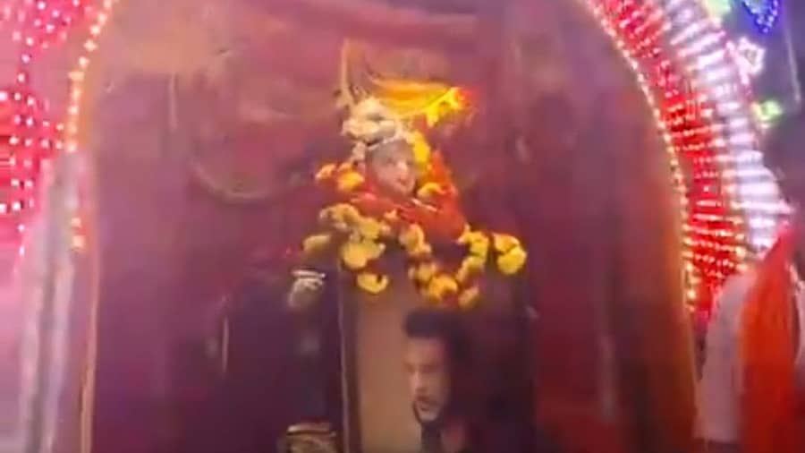 ನಟ ದರ್ಶನ್ ಅವರು ಆರೋಪ ಮುಕ್ತರಾಗಿ ಶೀಘ್ರವಾಗಿ ಬಿಡುಗಡೆಯಾಗಲಿ ಎಂದು ವಿಶೇಷ ಪೂಜೆ ಸಲ್ಲಿಸಲಾಯಿತು. ಗೌರಿ ಮೂರ್ತಿಯ ಕೆಳಭಾಗದಲ್ಲಿ ದರ್ಶನ್ ಭಾವಚಿತ್ರವಿಟ್ಟು ಪಲ್ಲಕ್ಕಿ ಮೆರವಣಿಗೆ ಮಾಡಲಾಯಿತು.