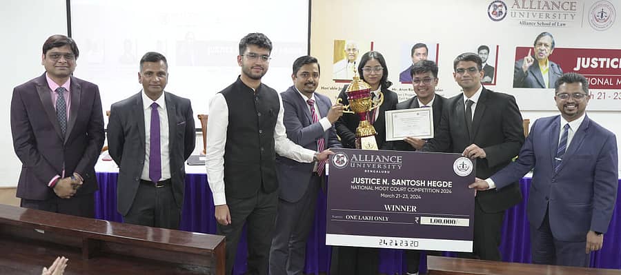 ಆನೇಕಲ್: ಅಲಯನ್ಸ್ ವಿಶ್ವವಿದ್ಯಾಲಯ ಆಯೋಜಿಸಿದ್ದ ರಾಷ್ಟ್ರೀಯ ಅಣಕು ನ್ಯಾಯಾಲಯ ಸ್ಪರ್ಧೆಯಲ್ಲಿ ಬೆಂಗಳೂರಿನ ಕ್ರೈಸ್ಟ್ ವಿಶ್ವವಿದ್ಯಾಲಯದ ಅದಿತ್ ಶಾ ಪ್ರಥಮ ಮತ್ತು ಗೋವಾದ ಪಣಜಿಯ ವಿ.ಎಂ. ಸಲಗಾಂವಕರ್ ಕಾನೂನು ವಿದ್ಯಾಲಯದ ವಿದ್ಯಾರ್ಥಿಗಳು ದ್ವಿತೀಯ ಸ್ಥಾನ ಪಡೆದಿದ್ದಾರೆ.