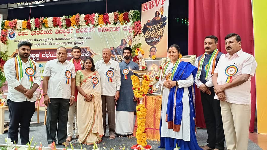 ರಾಷ್ಟ್ರೀಯ ಸ್ವಯಂ ಸೇವಕ ಸಂಘದ ಕ್ಷೇತ್ರಿಯ ಕಾರ್ಯವಾಹ ನಾ.ತಿಪ್ಪೇಸ್ವಾಮಿ ರಥಯಾತ್ರೆಗೆ ಚಾಲನೆ ನೀಡಿದರು. ಸೆ.6ರಿಂದ ಸೆ.17ರವರೆಗೆ ಯಾತ್ರೆ ರಾಜ್ಯದಾದ್ಯಂತ ಸಂಚರಿಸಲಿದ್ದು ರಾಣಿ ಅಬ್ಬಕ್ಕ ಸೇರಿದಂತೆ ನಾಡಿನ ವೀರನಾರಿಯರ ಪರಿಚಯವನ್ನು ಇಂದಿನ ತಲೆಮಾರಿಗೆ ಮಾಡಿಕೊಡಲಿದೆ.