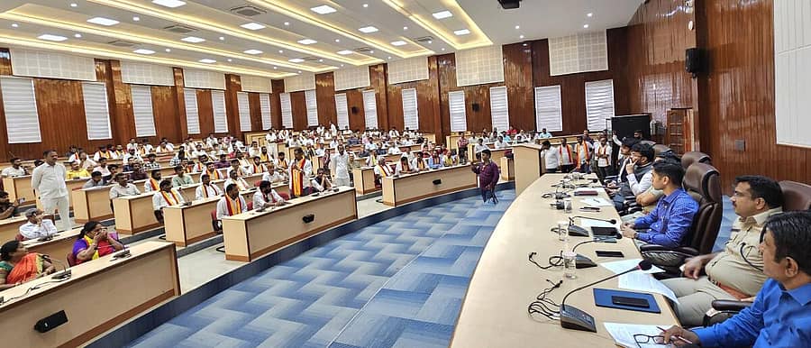 ರಾಜ್ಯೋತ್ಸವ ಸಿದ್ಧತೆಗಾಗಿ ಬೆಳಗಾವಿಯಲ್ಲಿ ಮಂಗಳವಾರ ನಡೆದ ಪೂರ್ವಭಾವಿ ಸಭೆಯಲ್ಲಿ ಜಿಲ್ಲಾಧಿಕಾರಿ ಮೊಹಮ್ಮದ್ ರೋಷನ್ ಮಾತನಾಡಿದರು. ಯಡಾ ಮಾರ್ಟಿನ್ ಮಾರ್ಬನ್ಯಾಂಗ್, ಡಾ.ಭೀಮಾಶಂಕರ ಗುಳೇದ, ವಿಜಯಕುಮಾರ ಹೊನಕೇರಿ, ವಿದ್ಯಾವತಿ ಭಜಂತ್ರಿ ಹಾಗೂ ಕನ್ನಡ ಹೋರಾಟಗಾರರು ಪಾಲ್ಗೊಂಡರು.
