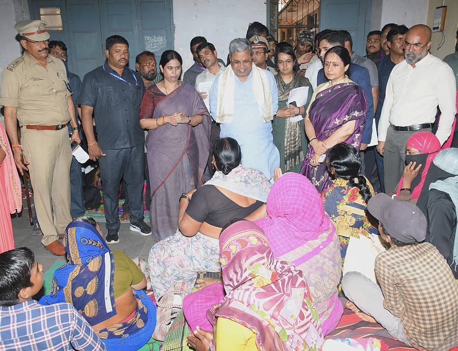ಮುಳಗಡೆಯಿಂದ ಸಂತ್ರಸ್ತ ಕುಟುಂಬಗಳಿಗೆ ವಸತಿ ಕಲ್ಪಿಸಲು ಗೋಕಾಕ ನಗರದ ಸರ್ಕಾರಿ ಮುನ್ಸಿಪಲ್ ಕಾಲೇಜಿನಲ್ಲಿ ಆರಂಭಿಸಲಾಗಿರುವ ಕಾಳಜಿ ಕೇಂದ್ರಕ್ಕೆ ಮುಖ್ಯಮಂತ್ರಿ ಸಿದ್ದರಾಮಯ್ಯ ಭೇಟಿ ನೀಡಿ, ಸಂತ್ರಸ್ತರ ಜತೆ ಚರ್ಚಿಸಿದರು.