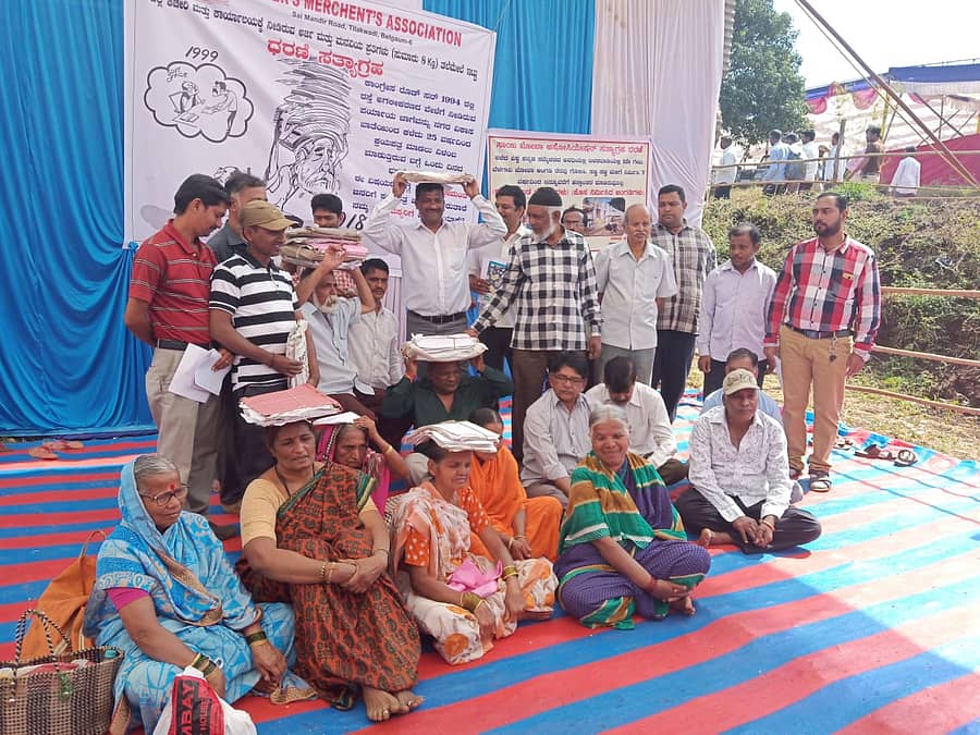 ಬೆಳಗಾವಿ:ನಗರದಲ್ಲಿ 2011ರಲ್ಲಿ ಆಯೋಜಿಸಿದ್ದ ವಿಶ್ವ ಕನ್ನಡ ಸಮ್ಮೇಳನಕ್ಕಾಗಿ ತೆರವುಗೊಳಿಸಿದ ಗೂಡಂಗಡಿಗಳವರಿಗಾಗಿ ನಿರ್ಮಿಸಿದ ವಾಣಿಜ್ಯ ಸಂಕೀರ್ಣದಲ್ಲಿ ಮಳಿಗೆಗಳನ್ನ ಹಂಚಿಕೆ ಮಾಡುವಂತೆ ಆಗ್ರಹಿಸಿ, ಗೂಡಂಗಡಿಗಳ ವ್ಯಾಪಾರಿಗಳು, ಈವರೆಗೆ ಸರ್ಕಾರಕ್ಕೆ ಸಲ್ಲಿಸಿದ ಮನವಿಗಳ ಕಡತಗಳನ್ನು ಹೊತ್ತುಕೊಂಡು ಮಂಗಳವಾರ ಸುವರ್ಣ ವಿಧಾನಸೌಧದ ಬಳಿ ಪ್ರತಿಭಟನೆ ನಡೆಸಿದರು.