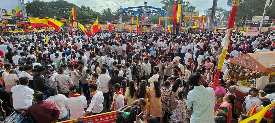 ಬೆಳಗಾವಿ: ಎಲ್ಲಿ ನೋಡಿದರೂ ಜನವೋ ಜನ, ಎತ್ತ ನೋಡಿದರೂ ಸಂಭ್ರಮ, ಸಾಗರೋಪಾದಿಯಲ್ಲಿ ಸೇರಿದ ಕನ್ನಡಾಭಿಮಾನಿಗಳು, ನೆಲ ನಡುಗಿಸುವಂಥ ಸಂಗೀತ, ಹಾಡು, ಯುವಕ- ಯುವತಿಯರ ನೃತ್ಯೋತ್ಸಾಹ, ಉಕ್ಕೇರಿ ಬಂದ ಅಭಿಮಾನದ ಹೊಳೆ...