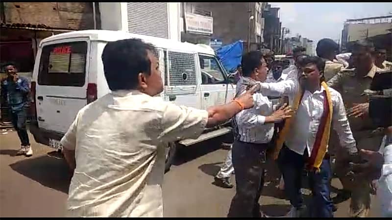 ಕರವೇ ಕಾರ್ಯಕರ್ತರುರಾಜ್ಯ ಸಂಚಾಲಕ ಮಹಾದೇವ ತಳವಾರ, ಜಿಲ್ಲಾ ಘಟಕದ ಅಧ್ಯಕ್ಷ ದೀಪಕ ಗುಡಗನಟ್ಟಿ ನೇತೃತ್ವದಲ್ಲಿ ತೆರಳಿದ್ದರು. ಈ ವೇಳೆಎರಡೂ ಸಂಘಟನೆಗಳ ಮುಖಂಡರ ನಡುವೆ ವಾಗ್ವಾದ ನಡೆದಿದೆ.