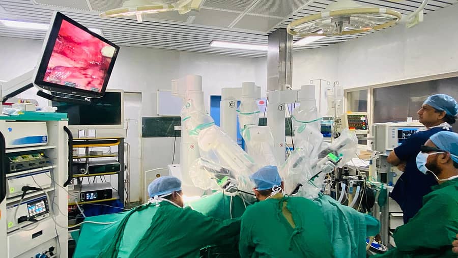 ಬೆಳಗಾವಿಯ ಕೆಎಲ್ಇ ಸಂಸ್ಥೆಯ ಡಾ. ಪ್ರಭಾಕರ ಕೋರೆ ಆಸ್ಪತ್ರೆ ಹಾಗೂ ವೈದ್ಯಕೀಯ ಸಂಶೋಧನಾ ಕೇಂದ್ರದಲ್ಲಿ ವೈದ್ಯರು ರೊಬಾಟಿಕ್ ತಂತ್ರಜ್ಞಾನ ಬಳಸಿ ಶಸ್ತ್ರಚಿಕಿತ್ಸೆ ನೆರವೇರಿಸಿದರು