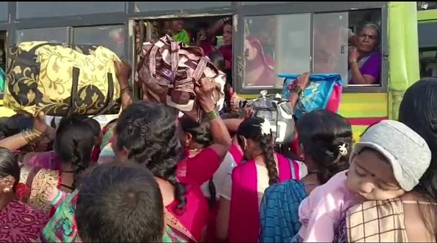 ಚಾಲಕ ಪ್ಲಾಟ್ ಫಾರ್ಮ್ ನಲ್ಲಿ ಬಸ್ ನಿಲ್ಲಿಸುತ್ತಿದ್ದಂತೆ ಸೀಟ್ ಹಿಡಿಯಲು ತಾ ಮುಂದು, ನಾ ಮುಂದು ಎನ್ನುತ್ತ ದೌಡಾಯಿಸಿದರು. ತಮ್ಮ ಸಾಮಾನುಗಳು ಕಿಟಕಿಯಲ್ಲಿ ಎಸೆದು ಸೀಟ್ ಬುಕ್ ಮಾಡಿದರು. ಕೆಲವರಂತೂ ಚಿಕ್ಕ ಮಕ್ಕಳನ್ನೂ ಕಿಡಿಕಿಯಿಂದ ಗಾಡಿಯೊಳಗೆ ತೂರಿದರು. ಇನ್ನು ಕೆಲವರು ಚಾಲಕರ ಹತ್ತಲು ಇರುವ ಬಾಗಿಲನ್ನೂ ತೆಗೆದು ಬಸ್ಸಿನೊಳಗೆ ನುಗ್ಗಿದರು. ಇಷ್ಟಾದ ಮೇಲೂ ಸೀಟ್ ಸಿಗದ ನಾಲ್ವರು ಮಹಿಳೆಯರ ಮಧ್ಯೆ ಪರಸ್ಪರ ವಾಗ್ವಾದ, ತಂಟೆ ಶುರುವಾಯಿತು.