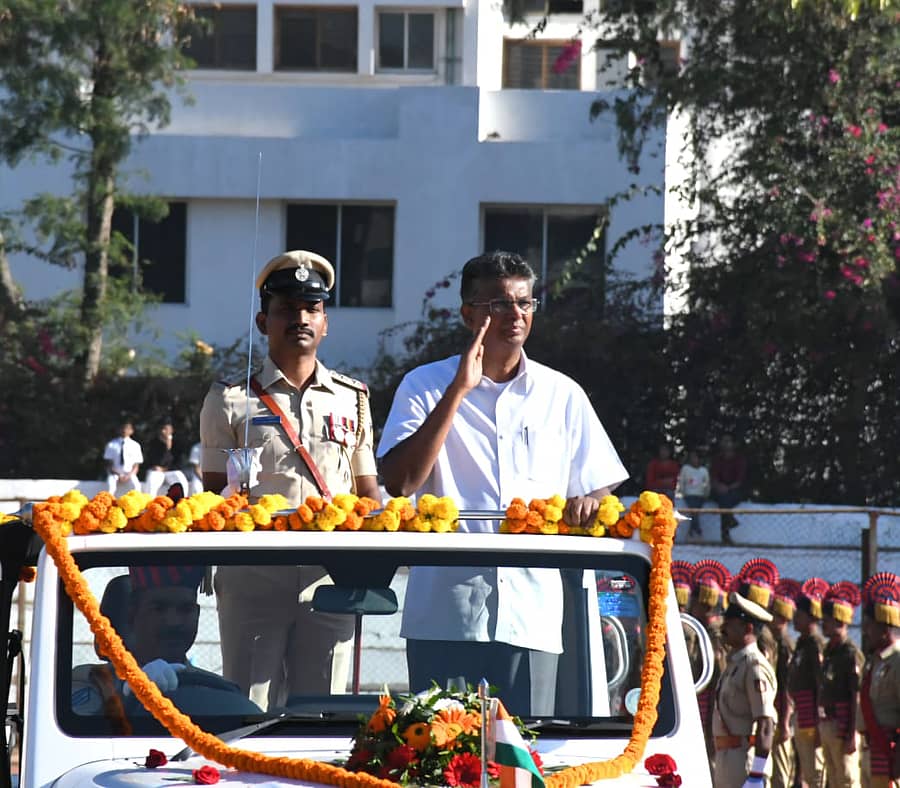 ಬೆಳಗಾವಿ: ಇಲ್ಲಿನ ಜಿಲ್ಲಾ ಕ್ರೀಡಾಂಗಣದಲ್ಲಿ ಗಣರಾಜ್ಯೋತ್ಸವ ಅಂಗವಾಗಿ ಜಿಲ್ಲಾ ಉಸ್ತುವಾರಿ ಸಚಿವ ಸತೀಶ ಜಾರಕಿಹೊಳಿ ಭಾನುವಾರ ಧ್ವಜಾರೋಹಣ ನೆರವೇರಿಸಿದರು.