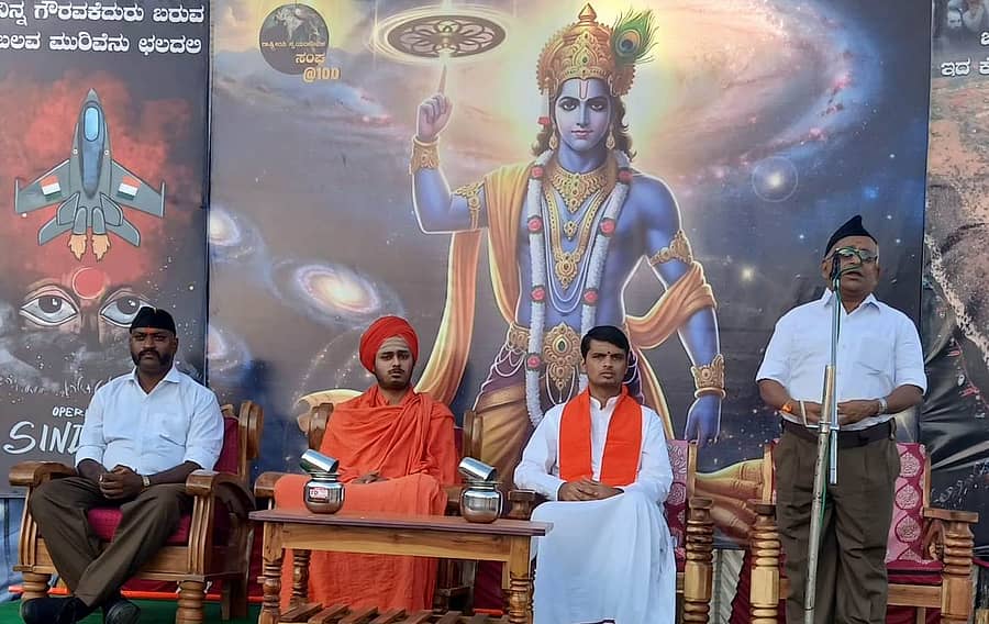 ಸಮಾರಂಭವದ ವೇದಿಕೆಯಲ್ಲಿ ರಾಷ್ಟ್ರೀಯ ಸ್ವಯಂಸೇವಕ ಸಂಘದ ಉತ್ತರ ಕರ್ನಾಟಕದ ವಕ್ತಾರ ಸುಕೃಷ್ಣಮೂರ್ತಿ ಮಾತನಾಡಿ ‘ಭಾರತ ದೇಶದ ಮೂಲ ವಾರುಸುದಾರರು ಹಿಂದೂಗಳಾಗಿದ್ದಾರೆ’ ಎಂದರು.