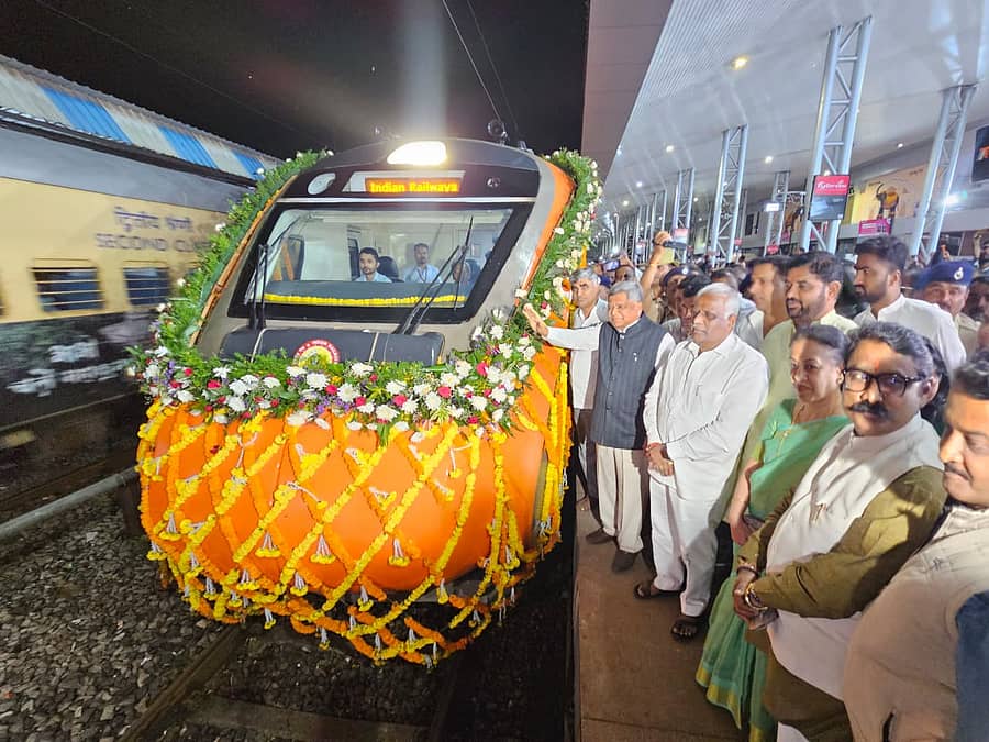 ಭಾನುವಾರ ಬೆಳಿಗ್ಗೆ ಬೆಂಗಳೂರಿನಲ್ಲಿ ಪ್ರಧಾನಿ ಮೋದಿ ಈ ರೈಲಿಗೆ ಹಸಿರು ನಿಶಾನೆ ತೋರಿಸಿದರು. ಅಲ್ಲಿಂದ ಹೊರಟ ರೈಲು ರಾತ್ರಿ 8.40ಕ್ಕೆ ಬೆಳಗಾವಿ ನಿಲ್ದಾಣಕ್ಕೆ ಬರುತ್ತಿದ್ದಂತೆ, ಜನರ ಹರ್ಷೋದ್ಘಾರ ಮುಗಿಲು ಮುಟ್ಟಿತು. ಜನರು ಚಪ್ಪಾಳೆ ತಟ್ಟಿ, ಸಿಳ್ಳೆ ಹೊಡೆದು ಸಂಭ್ರಮಿಸಿದರು. ‘ಭಾರತ್ ಮಾತಾ ಕೀ ಜೈ’, ‘ನರೇಂದ್ರ ಮೋದಿಗೆ ಜೈ’ ಎಂದು ಜೈಕಾರ ಕೂಗಿದರು.