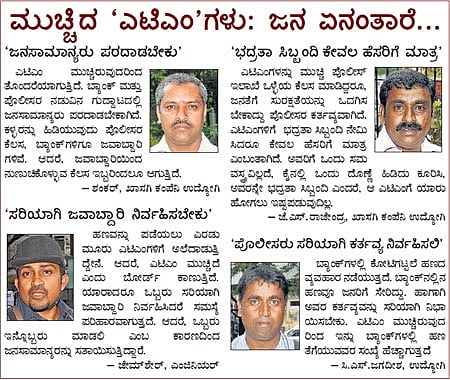 ‘ಈಗ ನಗರದಲ್ಲಿ ಗಲ್ಲಿ ಗಲ್ಲಿಗಳಲ್ಲೂ ಎಟಿಎಂ ಕೇಂದ್ರಗಳು ತಲೆ ಎತ್ತಿವೆ. ಇವುಗಳಿಂದ ಉಪಕಾರಕ್ಕಿಂತ ಸಮಸ್ಯೆಯೇ ಜಾಸ್ತಿ. ಇದರ ಬದಲು ಮುಖ್ಯ ರಸ್ತೆಗಳಲ್ಲಿ ಮಾತ್ರ ಎಟಿಎಂ ಕೇಂದ್ರಗಳನ್ನು ತೆರೆದು ಅವುಗಳಿಗೆ ಭದ್ರತಾ ಸಿಬ್ಬಂದಿ ನಿಯೋಜನೆ, ಸಿ.ಸಿ.ಕ್ಯಾಮೆರಾ ಅಳವಡಿಕೆಯಂತಹ ಅಗತ್ಯ ವ್ಯವಸ್ಥೆಗಳನ್ನು ಒದಗಿಸಬೇಕು. ಈ ವ್ಯವಸ್ಥೆ ಗ್ರಾಹಕರಿಗೆ ಸುರಕ್ಷತಾ ಭಾವನೆ ಮೂಡುವಂತಿರಬೇಕು. ಈಗಂತೂ ಕೆಲ ಭದ್ರತಾ ಸಿಬ್ಬಂದಿಯನ್ನು ನೋಡಿದರೆ