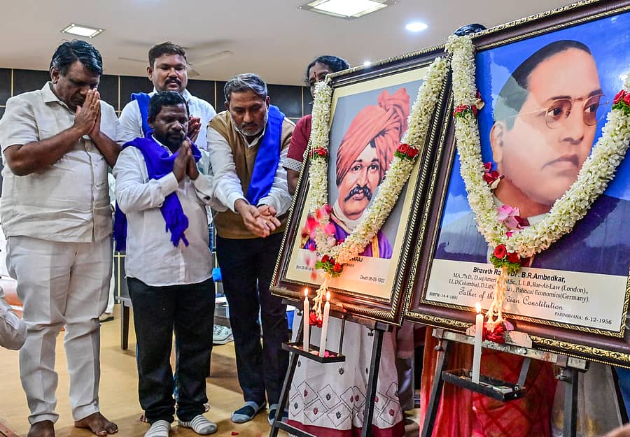 ಆರ್ಪಿಐ, ಡಿಎಸ್ಎಸ್ (ಭೀಮವಾದ) ರಾಜ್ಯಾಧ್ಯಕ್ಷ ಆರ್. ಮೋಹನರಾಜು ಮಾತನಾಡಿ, ‘ಅಂಬೇಡ್ಕರ್ ಎಂಬ ಪ್ರತಿಭೆಯನ್ನು ಗುರುತಿಸಿ ಬೆಳೆಸಿದ್ದರಿಂದ ಸಮಾನತೆಯ ಆಧಾರದಲ್ಲಿ ಸಂವಿಧಾನವನ್ನು ರಚಿಸಲು, ಶೋಷಿತರ ಧ್ವನಿಯಾಗಲು ಸಾಧ್ಯವಾಯಿತು. ಅಂಬೇಡ್ಕರ್ ಅವರ ಚಿಂತನೆಯ ಹಿಂದೆ ಸಮ ಸಮಾಜಕ್ಕಾಗಿ ಶ್ರಮಿಸಿದ ಬುದ್ಧ, ಬಾ ಫುಲೆ, ಶಾಹು ಮಹಾರಾಜರಂಥ ಅನೇಕರ ಹೋರಾಟಗಳು ಇವೆ’ ಎಂದು ಹೇಳಿದರು.