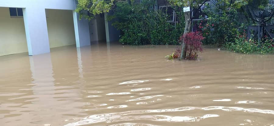 ಅಪಾರ್ಟ್ಮೆಂಟ್ನೆಲ ಮಹಡಿಯಲ್ಲಿತುಂಬಿದ್ದ ನೀರನ್ನು ಹೊರ ಹಾಕಿಸುವ ಕಾರ್ಯ ಮುಂದುವರಿದಿದೆ.