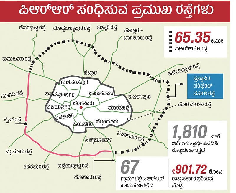 ಬೆಂಗಳೂರು: ಕ್ಷಿಪ್ರಗತಿಯಲ್ಲಿ ಬೆಳೆಯುತ್ತಿರುವ ಬೆಂಗಳೂರು ಮಹಾನಗರದಲ್ಲಿವರ್ಷದಿಂದ ವರ್ಷಕ್ಕೆ ಹೆಚ್ಚುತ್ತಿರುವ ಸಂಚಾರ ದಟ್ಟಣೆಯ ಭಾರವನ್ನು ತಾಳಿಕೊಳ್ಳಲು ಒಳವರ್ತುಲ ರಸ್ತೆ, ಹೊರವರ್ತುಲ ರಸ್ತೆಗಳ ಸಾಮರ್ಥ್ಯ ಸಾಲದು ಎಂಬ ಕಾರಣಕ್ಕೆ ರೂಪ ತಳೆದದ್ದು ಪೆರಿಫೆರಲ್ ವರ್ತುಲ ರಸ್ತೆ (ಪಿಆರ್ಆರ್) ಪರಿಕಲ್ಪನೆ.