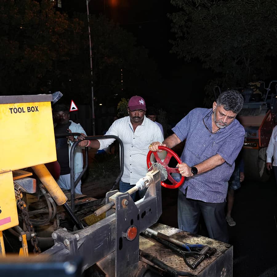 ಬಾಗಲೂರು ರಸ್ತೆಯಲ್ಲಿ ಗುಂಡಿ ಮುಚ್ಚಿವ ಕಾರ್ಯವನ್ನು ಡಿ.ಕೆ. ಶಿವಕುಮಾರ್ ವೀಕ್ಷಿಸಿದರು