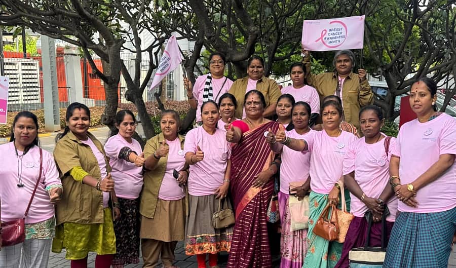 ಬೆಂಗಳೂರು: ‘ಸ್ತನ ಕ್ಯಾನ್ಸರ್ ಜಾಗೃತಿ ಮಾಸ’ದ ಅಂಗವಾಗಿ ಯಶವಂತಪುರದ ಮಣಿಪಾಲ್ ಆಸ್ಪತ್ರೆಯು ನಗರದಲ್ಲಿ ಆರಂಭಿಕ ಹಂತದಲ್ಲಿಯೇ ಕ್ಯಾನ್ಸರ್ ಪತ್ತೆ ಹಾಗೂ ಚಿಕಿತ್ಸೆ ಬಗ್ಗೆ ಜಾಗೃತಿ ಮೂಡಿಸಿತು.
