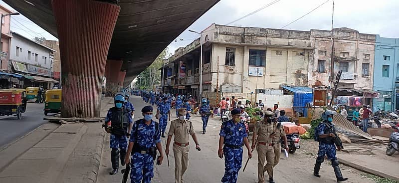 ಚಾಮರಾಜಪೇಟೆ, ಜೆ.ಜೆ.ನಗರ, ಸಿಟಿ ಮಾರ್ಕೆಟ್, ಶಿವಾಜಿನಗರ, ಕೆ.ಜಿ.ಹಳ್ಳಿ, ಡಿ.ಜೆ.ಹಳ್ಳಿ, ಪುಲಿಕೇಶಿನಗರ ಹಾಗೂ ಸುತ್ತಮುತ್ತ ಈ ಪಥಸಂಚಲನ ನಡೆಯುತ್ತಿದೆ.