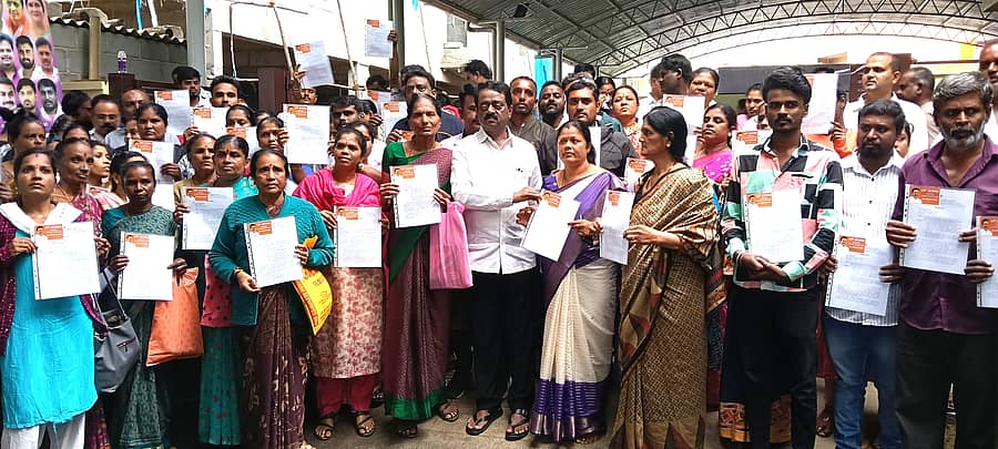 ಪೀಣ್ಯ ದಾಸರಹಳ್ಳಿ: ‘ಒಂಟಿ ಮನೆ ನಿರ್ಮಿಸಿಕೊಳ್ಳಲು ಫಲಾನುಭವಿಗಳಿಗೆ ಹಂತ ಹಂತವಾಗಿ ಸರ್ಕಾರ ₹ 5 ಲಕ್ಷ ಸಹಾಯಧನ ನೀಡುತ್ತಿದ್ದು, ಇದನ್ನು ಪಡೆಯುವುದಕ್ಕಾಗಿ ಯಾರಿಗೂ ಲಂಚ ಕೊಡಬೇಡಿ' ಎಂದು ಶಾಸಕ ಎಸ್. ಮುನಿರಾಜು ಫಲಾನುಭವಿಗಳಿಗೆ ಮನವಿ ಮಾಡಿದರು.