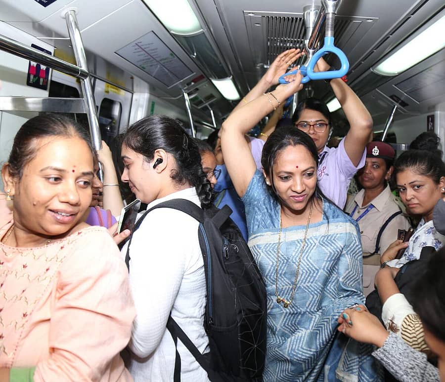 ಕೃಷ್ಣರಾಜಪುರ ಮೆಟ್ರೊ ನಿಲ್ದಾಣದವರೆಗೆ ಮೆಟ್ರೊ ರೈಲಿನಲ್ಲಿ ಪ್ರಯಾಣಿಸಿ, ಮಹಿಳಾ ಪ್ರಯಾಣಿಕರೊಂದಿಗೆ ಸಂವಾದ ನಡೆಸಿದರು. ಮೆಟ್ರೊ ರೈಲಿನ ಕೋಚ್ಗಳನ್ನು ಹೆಚ್ಚಿಸುವುದರ ಜೊತೆಗೆ ಮಹಿಳಾ ಬೋಗಿಗಳನ್ನು ಹೆಚ್ಚಿಸಬೇಕು’ ಎಂದು ನಾಗಲಕ್ಷ್ಮಿ, ಬಿಎಂಆರ್ಸಿಎಲ್ ಅಧಿಕಾರಿಗಳಿಗೆ ಸಲಹೆ ನೀಡಿದರು. ಬಿಎಂಆರ್ಸಿಎಲ್ನ ಕಾರ್ಯನಿರ್ವಾಹಕ ನಿರ್ದೇಶಕ ಎ.ಎಸ್. ಶಂಕರ್ ಇದ್ದರು