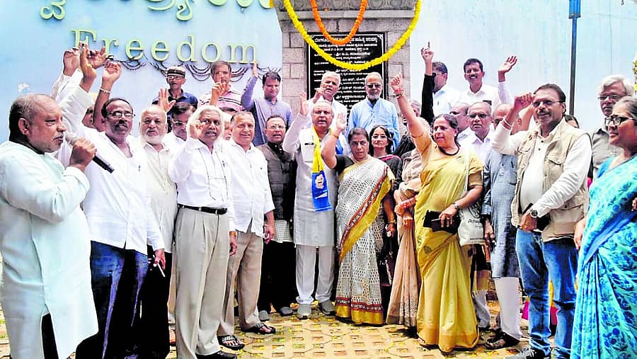 ಬೆಂಗಳೂರು: ಮುಡಾ’ ನಿವೇಶನ ಹಂಚಿಕೆ ಪ್ರಕರಣದ ಸಂಬಂಧ ಮುಖ್ಯಮಂತ್ರಿ ಸಿದ್ದರಾಮಯ್ಯ ಅವರ ವಿರುದ್ಧ ತನಿಖೆಗೆ ಅನುಮತಿ ನೀಡಿರುವ ರಾಜ್ಯಪಾಲರ ಕ್ರಮ ಖಂಡಿಸಿ ‘ಪ್ರಜಾಪ್ರಭುತ್ವ ಕ್ಕಾಗಿ ನಾವು-ಸಮಾನ ಮನಸ್ಕರು’ ಸಂಘಟನೆ ನೇತೃತ್ವದಲ್ಲಿ ಇಲ್ಲಿನ ಸ್ವಾತಂತ್ರ್ಯ ಉದ್ಯಾನದಲ್ಲಿ ಸಾಹಿತಿಗಳು, ರಂಗಕರ್ಮಿಗಳು, ಸಾಮಾಜಿಕ ಕಾರ್ಯಕರ್ತರೂ ಸೇರಿದಂತೆ ವಿವಿಧ ಕ್ಷೇತ್ರಗಳ ಗಣ್ಯರು ಸೋಮವಾರ ಪ್ರತಿಭಟಿಸಿದರು.