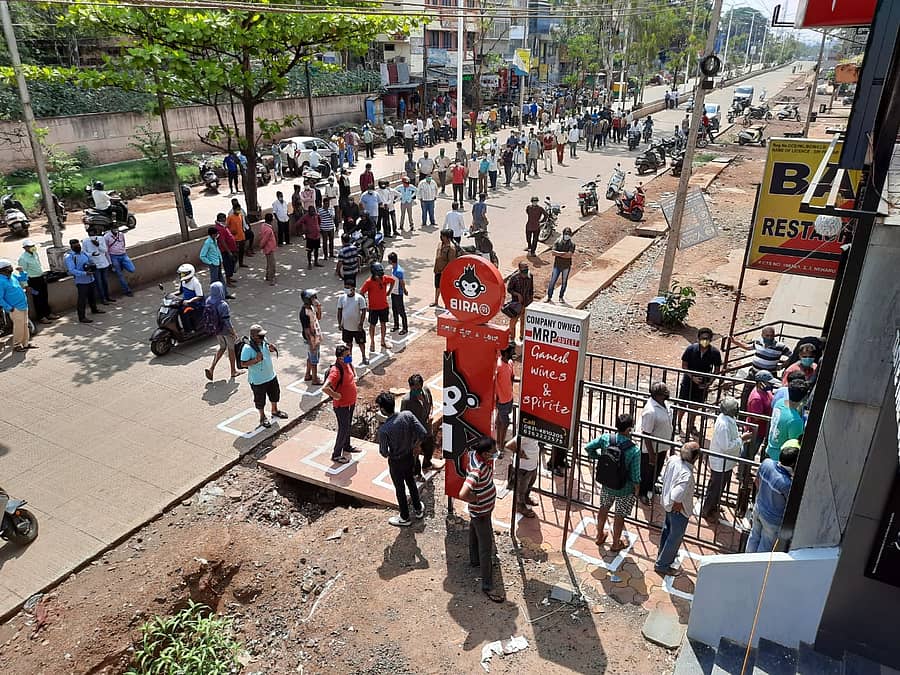 ಮಹಿಳೆಯರಿಗೆ ಪ್ರತ್ಯೇಕ ಸರದಿ; ಕಗ್ಗದಾಸಪುರದ ‘ಟೋಟಲ್ ಡ್ರಾಪ್ಸ್’ ಮದ್ಯದಂಗಡಿ ಮುಂದೆ ಮಹಿಳೆಯರಿಗಾಗಿಯೇ ಪ್ರತ್ಯೇಕ ಸರದಿ ವ್ಯವಸ್ಥೆ ಮಾಡಲಾಗಿತ್ತು.