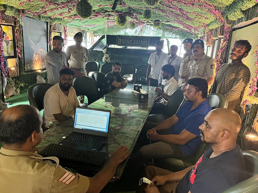 ಪಾರ್ಟಿ ಮಾಡಿದ್ದ ಸ್ಥಳದಲ್ಲಿಯೇ ಆರೋಪಿಗಳನ್ನು ಕೂರಿಸಿ ಪೊಲೀಸ್ ಅಧಿಕಾರಿಯೊಬ್ಬರು ಲ್ಯಾಪ್ಟಾಪ್ನಲ್ಲಿ ಎಲ್ಲ ಮಾಹಿತಿಯನ್ನು ದಾಖಲಿಸಿಕೊಂಡಿದ್ದರು. ದರ್ಶನ್ ಮತ್ತು ಸ್ನೇಹಿತರು ಮೌನವಾಗಿ ಕುಳಿತಿರುವುದು, ಚಿಕ್ಕಣ್ಣ ಹಾಗೂ ವಿನಯ್ ಆತಂಕದಲ್ಲಿರುವುದು ಸ್ಥಳ ಮಹಜರಿನ ಫೋಟೊದಲ್ಲಿ ಕಾಣಿಸುತ್ತದೆ. ಇತರೆ ಕೆಲವು ಪೊಲೀಸ್ ಸಿಬ್ಬಂದಿ ಸಹ ಚಿತ್ರದಲ್ಲಿದ್ದಾರೆ.