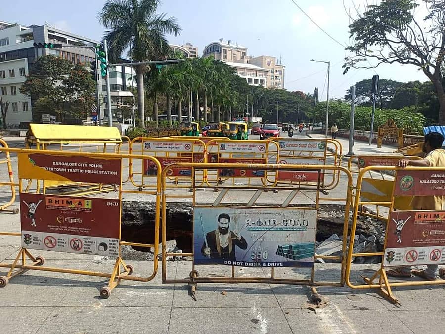ಬೆಂಗಳೂರು: ಹಲಸೂರು ಸಂಚಾರ ಪೊಲೀಸ್ ಠಾಣೆ ವ್ಯಾಪ್ತಿಯ ಕೆನ್ಸಿಂಗ್ಟನ್ ಜಂಕ್ಷನ್ ಸಮೀಪ ರಸ್ತೆ ಕುಸಿದು, ದೊಡ್ಡ ಗಾತ್ರದ ಗುಂಡಿಬಿ ದ್ದಿದೆ.