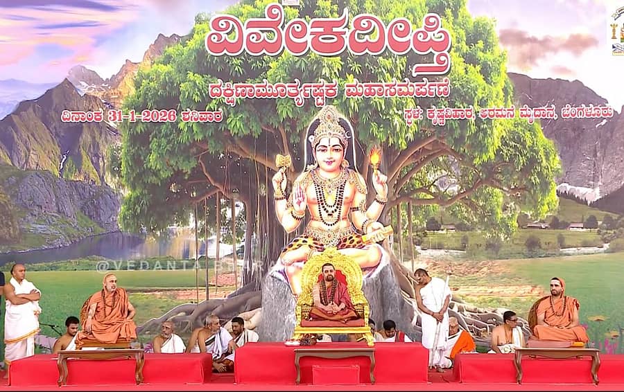ನಗರದ ಅರಮನೆ ಮೈದಾನದ ಕೃಷ್ಣವಿಹಾರದಲ್ಲಿ ವೇದಾಂತ ಭಾರತಿಯಿಂದ ಆಯೋಜಿಸಿರುವ ನಾಲ್ಕು ದಿನಗಳ ‘ವಿವೇಕದೀಪ್ತಿ’ ಬೃಹತ್ ಸಮಾವೇಶದಲ್ಲಿ ಶ್ರೀ ಶಂಕರಭಗವತ್ಪಾದ ವಿರಚಿತ ದಕ್ಷಿಣಾ ಮೂರ್ತಿ ಅಷ್ಟಕದ ಮಹಾ ಸಮರ್ಪಣೆ ನಂತರ ಆಶೀರ್ವಚನ ನೀಡಿದ ಅವರು, ಇಂದ್ರಿಯಗಳನ್ನು ವಶದಲ್ಲಿ ಇಟ್ಟುಕೊಳ್ಳದಿದ್ದರೆ ಸಹಜವಾಗಿಯೇ ದುಖಃ ಅನುಭವಿಸಬೇಕಾಗುತ್ತದೆ. ಆಧುನಿಕ ವಿಜ್ಞಾನದ ಆವಿಷ್ಕಾರಗಳು, ಪ್ರಗತಿ ನಮ್ಮ ಜೀವನ ಸುಧಾರಣೆಗೆ ನೆರವಾಗಲಿವೆ. ಆದರೆ ಶಂಕರರ ತತ್ವಗಳು ಜೀವನವನ್ನು ಸಾರ್ಥಕಮಾಡಿಕೊಳ್ಳಲು ಸಹಕಾರಿಯಾಗಲಿವೆ ಎಂದರು.