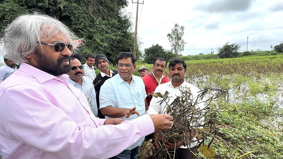 ಭಾಲ್ಕಿ ತಾಲ್ಲೂಕಿನ ಕಾರಂಜಾ ಜಲಾಶಯಕ್ಕೆ ಹೊಂದಿಕೊಂಡಿರುವ ಕಟ್ಟಿತೂಗಾಂವ್, ಹಾಲಹಳ್ಳಿ, ಬ್ಯಾಲಹಳ್ಳಿ ಗ್ರಾಮಗಳ ಹೊಲಗಳಿಗೆ ಭೇಟಿ ಕೊಟ್ಟು ರೈತರ ಸಮಸ್ಯೆ ಆಲಿಸಿದರು. ಶೀಘ್ರ ಪರಿಹಾರ ನೀಡುವ ಆಶ್ವಾಸನೆ ನೀಡಿದರು.