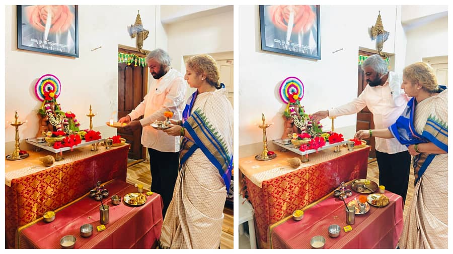 ಪತ್ನಿ ಗೀತಾ ಖಂಡ್ರೆಯವರೊಂದಿಗೆ ಗಣೇಶನಿಗೆ ಪೂಜೆ ಸಲ್ಲಿಸಿ,ಆರತಿ ಬೆಳಗಿದರು.