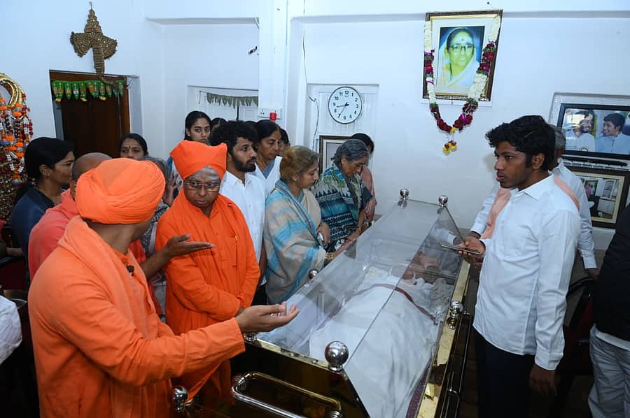 ಪವಿತ್ರ ಆತ್ಮವಿದ್ದ ದೇಹ ಶುದ್ಧಿಗಾಗಿ ಜಳಕ ಮಾಡಿಸಿ, ಲಿಂಗಪೂಜೆ ಮಾಡಿ, ಭಸ್ಮಧಾರಣೆ, ರುದ್ರಾಕ್ಷಿ ಮಾಲೆ ತೊಡಿಸಿ, ಧೂಪ, ದೀಪಾರತಿ, ಪಾದಪೂಜೆ ಮಾಡಿಸಿದರು.