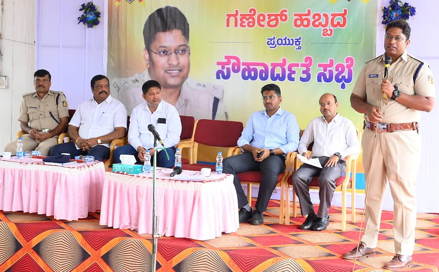 ನಗರದ ಎಸ್ಪಿ ಕಚೇರಿ ಆವರಣದಲ್ಲಿ ಮಂಗಳವಾರ ಏರ್ಪಡಿಸಿದ್ದ ಗಣೇಶ ಚತುರ್ಥಿ ಹಾಗೂ ಈದ್–ಮಿಲಾದ್ ಶಾಂತಿ ಸಭೆಯ ಅಧ್ಯಕ್ಷತೆ ವಹಿಸಿ ಮಾತನಾಡಿದರು.