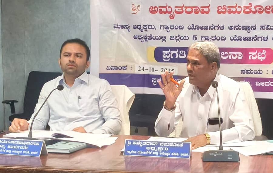 ಬೀದರ್: ‘ಗ್ಯಾರಂಟಿ ಯೋಜನೆಗಳಿಗೆ ಸಂಬಂಧಿಸಿದ ಸಮಸ್ಯೆಗಳ ಬಗ್ಗೆ ಅಧಿಕಾರಿಗಳಿಗೆ ಲಿಖಿತ ರೂಪದಲ್ಲಿ ದೂರುಗಳು ಬಂದರೆ ಅವುಗಳಿಗೆ ಅಧಿಕಾರಿಗಳು ಸ್ಪಂದಿಸಬೇಕು. ಇಲ್ಲವಾದಲ್ಲಿ ಕ್ರಮ ಜರುಗಿಸಲಗುವುದು’ ಎಂದು ಜಿಲ್ಲಾ ಗ್ಯಾರಂಟಿ ಯೋಜನೆಗಳ ಅನುಷ್ಠಾನ ಸಮಿತಿ ಅಧ್ಯಕ್ಷ ಅಮೃತರಾವ್ ಚಿಮಕೋಡೆ ತಿಳಿಸಿದರು.