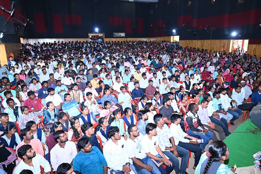 ಬೀದರ್: ಮೋಡ ಕವಿದ ವಾತಾವರಣ, ಜಿಟಿಜಿಟಿ ಮಳೆ, ಸಂಪೂರ್ಣ ತಂಪಾದ ವಾತಾವರಣ. ಇಂತಹ ಪರಿಸರದಲ್ಲಿ ಹೆಸರು ನೋಂದಣಿಗೆ ತಾ ಮುಂದು, ನಾ ಮುಂದು ಎಂದು ಕೌಂಟರ್ಗಳ ಎದುರು ವಿದ್ಯಾರ್ಥಿ/ವಿದ್ಯಾರ್ಥಿನಿಯರ ಸಾಲು, ಕಾರ್ಯಕ್ರಮ ಆರಂಭಗೊಳ್ಳುವುದಕ್ಕೂ ಅರ್ಧಗಂಟೆ ಮೊದಲೇ ಇಡೀ ಸಭಾಂಗಣ ಕಿಕ್ಕಿರಿದು ಭರ್ತಿ.