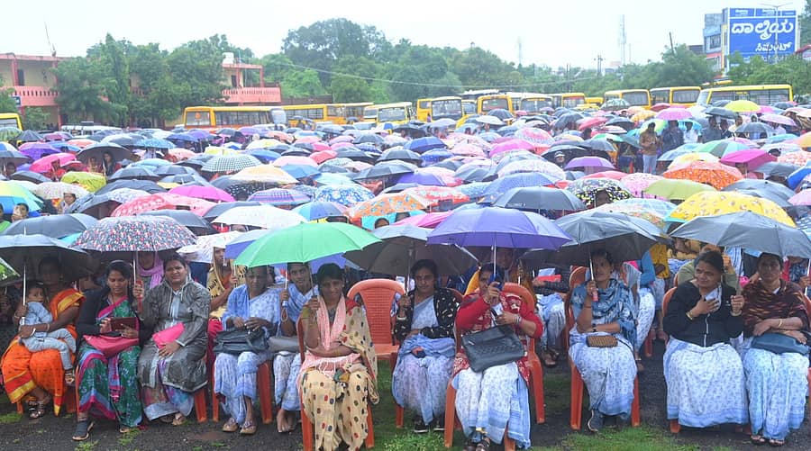 ಬೀದರ್: 15, 20 ವರ್ಷಗಳಿಂದ ನಡೆಸಲಾಗುತ್ತಿರುವ ಶಾಲೆಗಳನ್ನು ಅನುದಾನಕ್ಕೆ ಒಳಪಡಿಸುವುದು ಸೇರಿದಂತೆ ಇತರೆ ಬೇಡಿಕೆಗಳನ್ನು ಈಡೇರಿಸಲು ಆಗ್ರಹಿಸಿ ಕಲ್ಯಾಣ ಕರ್ನಾಟಕ ಅನುದಾನ ರಹಿತ ಖಾಸಗಿ ಶಾಲಾ ಆಡಳಿತ ಮಂಡಳಿ ಸಂಘದವರು ನಗರದಲ್ಲಿ ಗುರುವಾರ ಜಿಟಿಜಿಟಿ ಮಳೆಯಲ್ಲೇ ಕೊಡೆಗಳನ್ನು ಹಿಡಿದುಕೊಂಡು ಪ್ರತಿಭಟನೆ ನಡೆಸಿದರು.