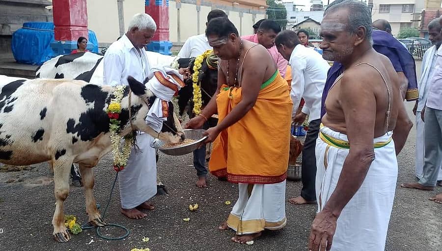 ಚಾಮರಾಜನಗರ: ಬಲಿಪಾಡ್ಯಮಿ ಅಂಗವಾಗಿ ಚಾಮರಾಜನಗರದ ಚಾಮರಾಜೇಶ್ವರ ದೇವಸ್ಥಾನದಲ್ಲಿ ಸರ್ಕಾರದ ಆದೇಶದಂತೆ ಗೋವಿಗೆ ಪೂಜೆಯನ್ನು ಎಲ್ಲ ಮುಜರಾಯಿ ದೇವಸ್ಥಾನಗಳಲ್ಲಿ ಸರ್ಕಾರದ ಆದೇಶದ ಮೇರೆಗೆ ಶುಕ್ರವಾರ ಸಂಜೆ ಗೋಪೂಜೆಯನ್ನು ನೆರವೇರಿಸಲಾಯಿತು.