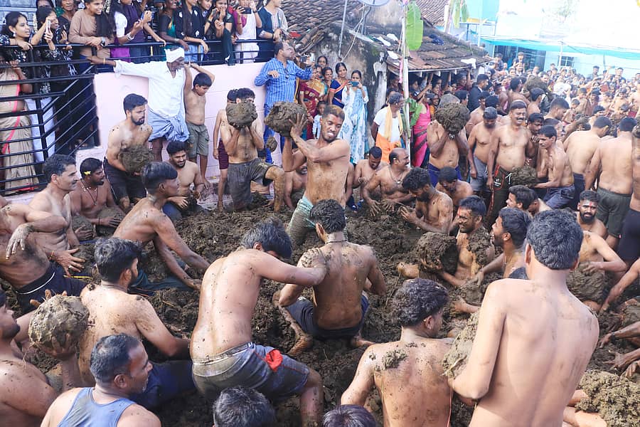 ಚಾಮರಾಜನಗರ: ಪ್ರತಿವರ್ಷದ ಸಂಪ್ರದಾಯದಂತೆ ಜಿಲ್ಲೆಯ ಗಡಿ ಭಾಗವಾದ ತಮಿಳುನಾಡಿನ ತಾಳವಾಡಿಯ ಗುಮಟಾಪುರದಲ್ಲಿ ಗುರುವಾರ ‘ಗೊರೆಹಬ್ಬ’ ನಡೆಯಿತು. ಸೆಗಣಿಯಿಂದ ಪರಸ್ಪರ ಎರಚಾಡಿಕೊಳ್ಳುವ ವಿಶಿಷ್ಟ ಹಬ್ಬ ಇದಾಗಿದ್ದು ಗ್ರಾಮಸ್ಥರು ಭಾಗವಹಿಸಿ ಸಂಭ್ರಮಿಸಿದರು.