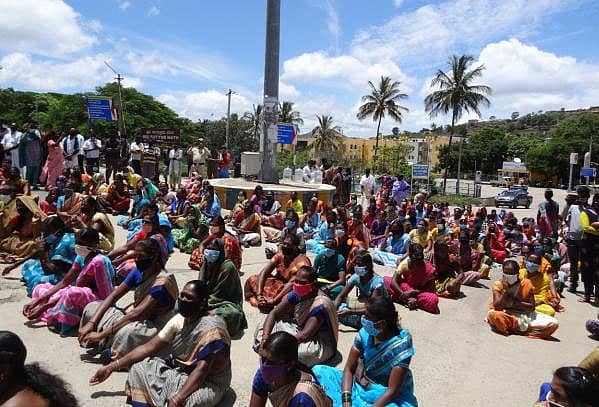 ಮಹದೇಶ್ವರಬೆಟ್ಟ: ಕೋವಿಡ್ –19 ಹರಡುವ ಸಾಧ್ಯತೆ ಇರುವುದರಿಂದ ಇಲ್ಲಿನ ಮಹದೇಶ್ವರಸ್ವಾಮಿ ದೇವಾಲಯಕ್ಕೆ ಭಕ್ತರ ಪ್ರವೇಶ ನಿರ್ಬಂಧಿಸಬೇಕು ಎಂದು ಒತ್ತಾಯಿಸಿ ಸ್ಥಳೀಯರು, ಮಹಿಳಾ ಸಂಘಟನೆ ಹಾಗೂ ರೈತ ಸಂಘದ ಪದಾಧಿಕಾರಿಗಳು ಹಾಗೂ ಕಾರ್ಯಕರ್ತರು ಗುರುವಾರ ಪ್ರತಿಭಟನೆ ನಡೆಸಿದರು.