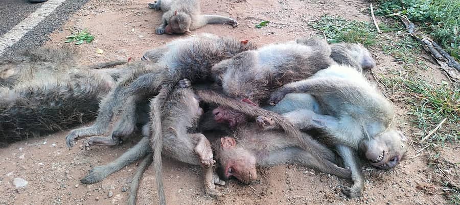 ಕಂದೇಗಾಲ-ಕೊಡಸೋಗೆ ರಸ್ತೆಯಲ್ಲಿ ಎರಡು ಚೀಲಗಳಲ್ಲಿ ಕೋತಿಗಳ ಕಳೇಬರವನ್ನು ತಂದು ಬಿಸಾಡಿ ಹೋಗಲಾಗಿದೆ.