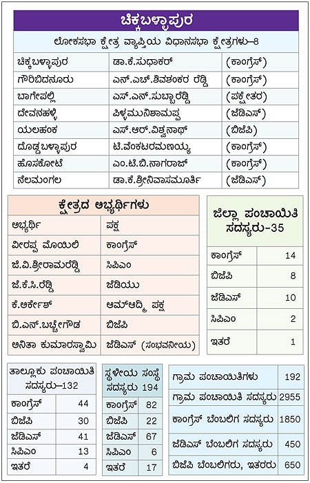 ಹೆಸರಿಗೆ ಇದು ಚಿಕ್ಕಬಳ್ಳಾಪುರ ಕ್ಷೇತ್ರ. ಆದರೆ ಈ ಜಿಲ್ಲೆಯ ಮೂರು ವಿಧಾನಸಭಾ ಕ್ಷೇತ್ರ ಮಾತ್ರ ಇದರಲ್ಲಿದೆ. ಉಳಿದಂತೆ ಬೆಂಗಳೂರು ಗ್ರಾಮಾಂತರ ಜಿಲ್ಲೆಯ ನಾಲ್ಕು ವಿಧಾನಸಭಾ ಕ್ಷೇತ್ರ, ಬೆಂಗಳೂರು ನಗರದ ಒಂದು ವಿಧಾನಸಭಾ ಕ್ಷೇತ್ರ ಇದರ ವ್ಯಾಪ್ತಿಗೆ ಬರುತ್ತವೆ ನೆಲಮಂಗಲ ವಿಧಾನಸಭಾ ಕ್ಷೇತ್ರ ವ್ಯಾಪ್ತಿಯಲ್ಲಿರುವ ಮಾಗಡಿ ತಾಲ್ಲೂಕಿನ ಸೋಲೂರು ಹೋಬಳಿ ಈ ಕ್ಷೇತ್ರದ ವ್ಯಾಪ್ತಿಯಲ್ಲಿದೆ.