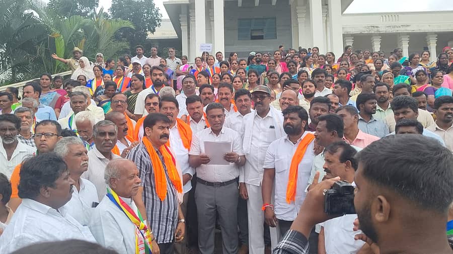ಎಸ್ಆರ್ಎಸ್ ದೇವರಾಜ್, ರವಿಕುಮಾರ್ ಮತ್ತಿತರರು ಪ್ರತಿಭಟನೆಯಲ್ಲಿ ಪಾಲ್ಗೊಂಡಿದ್ದರು.