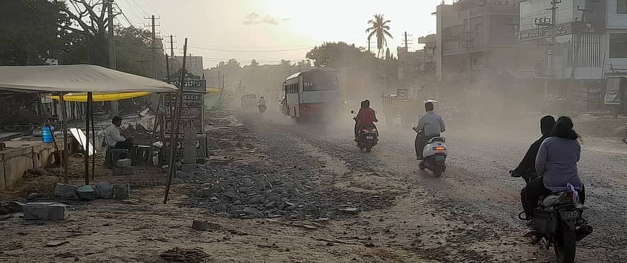 ತರೀಕೆರೆ ಪಟ್ಟಣದಲ್ಲಿ ನಡೆಯುತ್ತಿರುವ ರಸ್ತೆ ವಿಸ್ತರಣೆ ಕಾಮಗಾರಿಯಿಂದ ರಸ್ತೆ ಮತ್ತಷ್ಟು ಹಾಳಾಗಿರುವುದು