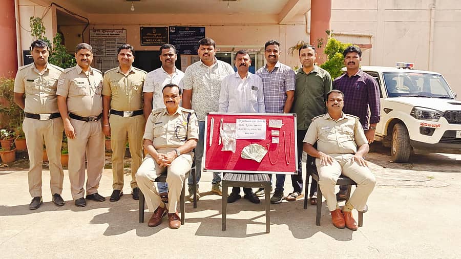 ನಗರ ಠಾಣೆ ವ್ಯಾಪ್ತಿಯಲ್ಲಿ ಚೈತ್ರಾ ಎಂಬುವರ ಮನೆಯಲ್ಲಿ ಜುಲೈನಲ್ಲಿ ಬಾಗಿಲು ಮುರಿದು ಕಳ್ಳತನ ನಡೆಸಲಾಗಿತ್ತು. ಈ ಸಂಬಂಧ ನಗರ ಠಾಣೆಯಲ್ಲಿ ಪ್ರಕರಣ ದಾಖಲಾಗಿತ್ತು.