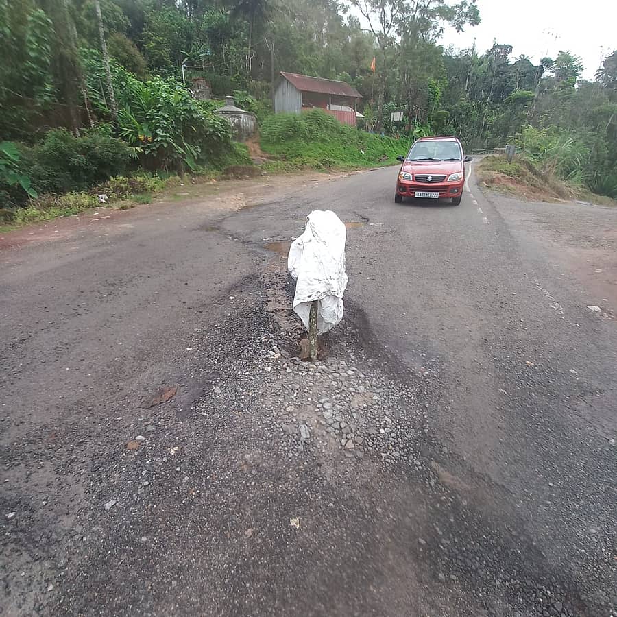 ಮೂಡಿಗೆರೆ ತಾಲ್ಲೂಕಿನ ಬಾಳೂರು ಸಮೀಪದ ಸಂಪ್ಯ ಎಂಬಲ್ಲಿ ಹೊರನಾಡು ರಸ್ತೆಯ ಹೆದ್ದಾರಿಯಲ್ಲಿ ಬಾರಿ ಗಾತ್ರದ ಗುಂಡಿಯಾಗಿರುವುದು