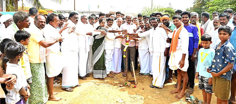 ಗ್ರಾಮ ಪಂಚಾಯಿತಿ ಅಧ್ಯಕ್ಷೆ ಗೌರಮ್ಮ, ನಂದನ ಹೊಸೂರು ಪ್ರವೀಣ್, ಮಂಜುನಾಥ್, ರಾಜಣ್ಣ, ನಾಗರಾಜಪ್ಪ, ಮಾದಣ್ಣ, ಎಲೆ ರಾಜಪ್ಪ, ರಾಜಣ್ಣ, ಶ್ರೀನಿವಾಸ್ ಹಾಗೂ ಗ್ರಾಮಸ್ತರು ಇದ್ದರು.